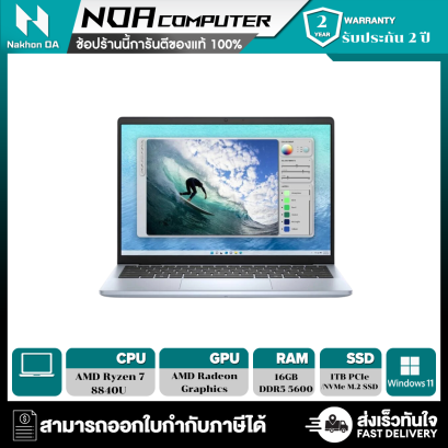 CPU AMD Ryzen 7 8840U/16GB (8GBx2) DDR5 5600 MT/s/1TB PCIe/NVMe M.2 SSD/14" FHD+ Anti-Glare/ AMD Radeon Graphics (Integrated)/ Windows 11 Home + Office Home & Student 2021