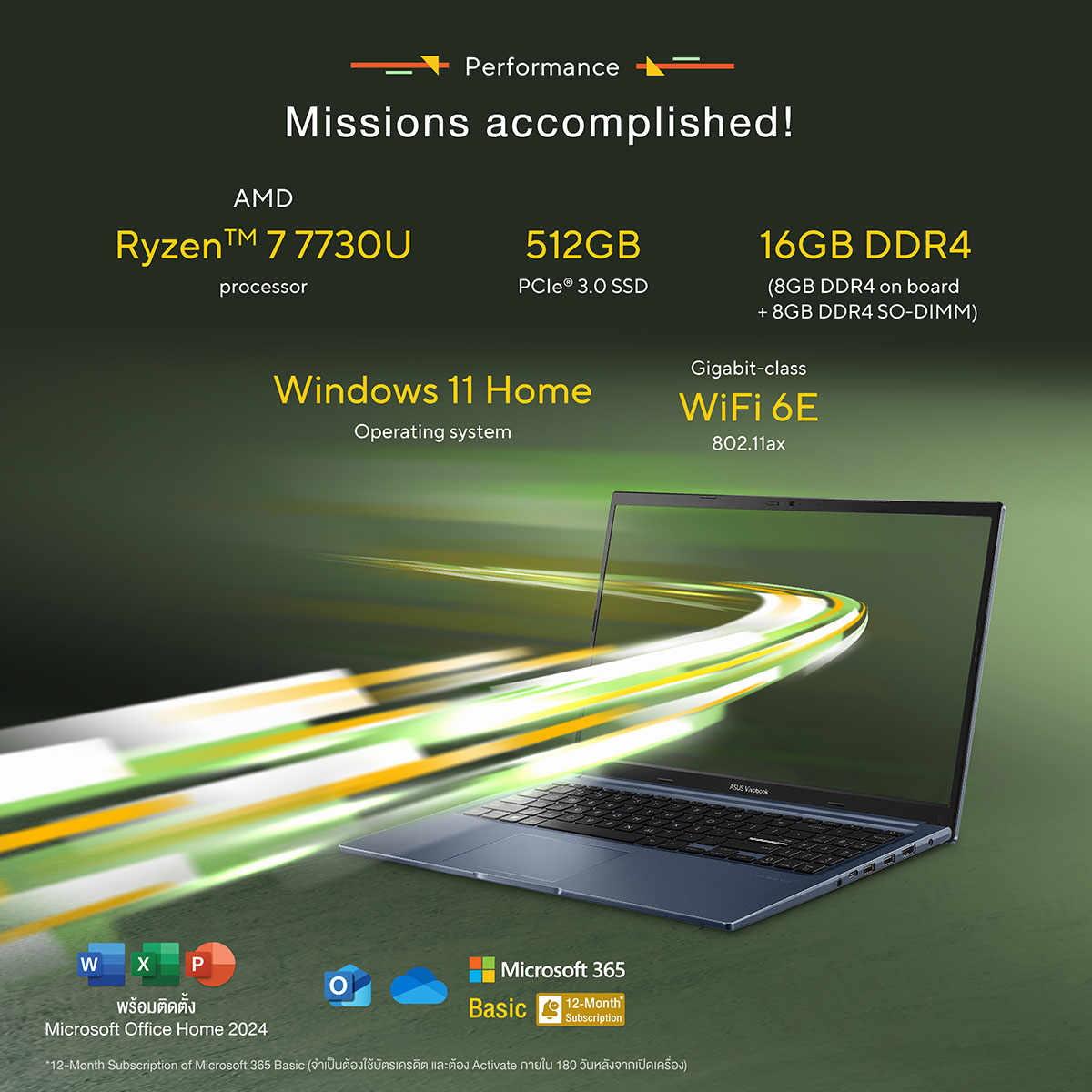 7. มาพร้อม Windows 11 Home , Microsoft Office Home 2024 และ 12-month subscription of Microsoft 365 Basic (จำเป็นต้องใช้บัตรเครดิต และต้อง Activate ภายใน 180 วันหลังจากเปิดเครื่อง)