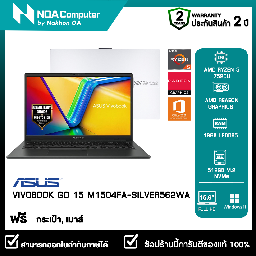 [พร้อมส่ง]NOTEBOOK (โน้ตบุ๊ค) ASUS VIVOBOOK GO 15 M1504FA-SILVER562WA 15.6" FHD รับประกันซ่อมฟรีถึงบ้าน 2ปี