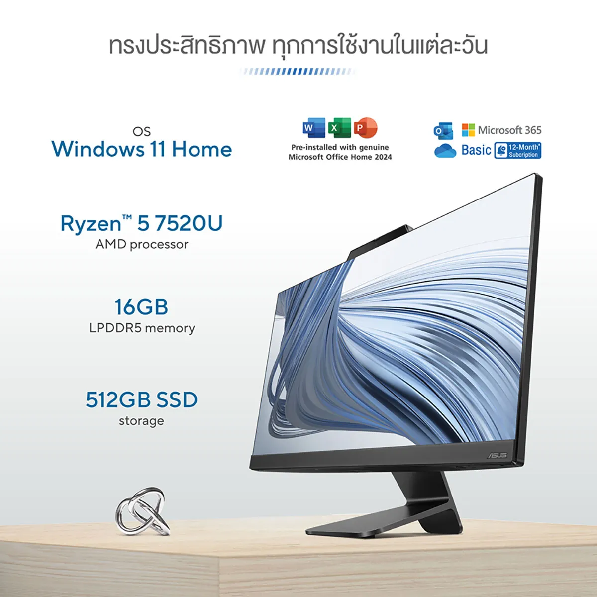 RYZEN 5-7520U/16GB/512GB/WIN11+OFFICE/23.8" FHD/ รับประกันซ่อมฟรีถึงบ้าน 3ปี