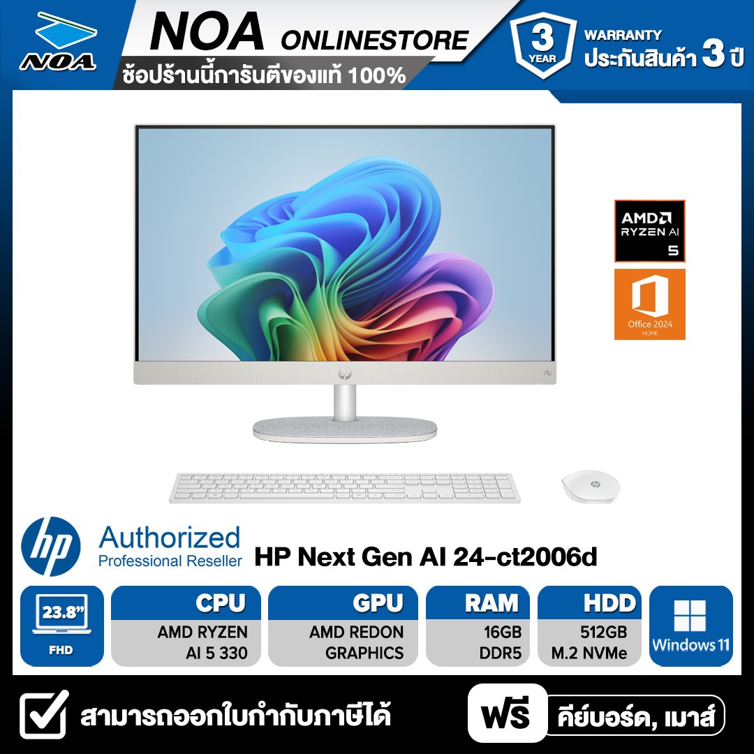 ALL-IN-ONE (ออลอินวัน) HP NEXT GEN AI 24-CT2006D 23.8" FHD/RYZEN AI 5 330/RAM 16GB/SSD 512GB/WINDOWS 11+OFF+OFF365 รับประกันซ่อมฟรีถึงบ้าน 3ปี